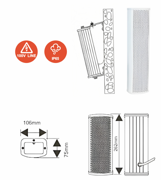 - Slim Line Column speaker suitable for outdoor application.